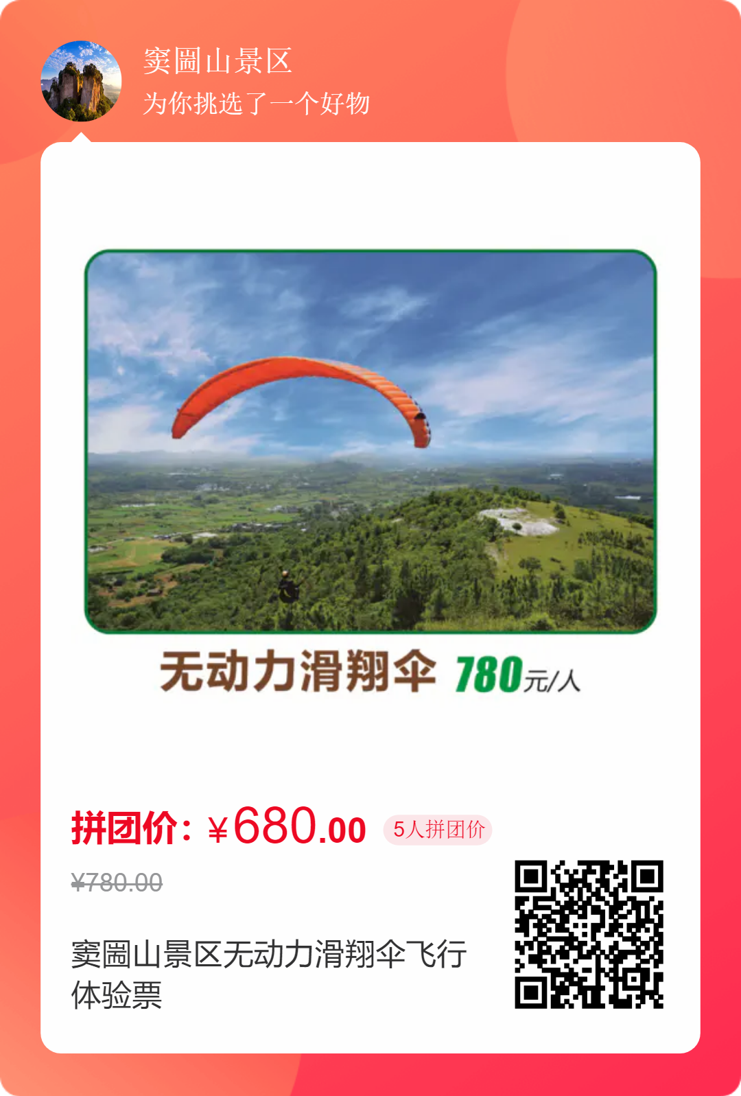 滑翔傘套票包含:景區(qū)入園門票+往返索道+滑翔傘保險費用+滑翔傘裝備費用等.
